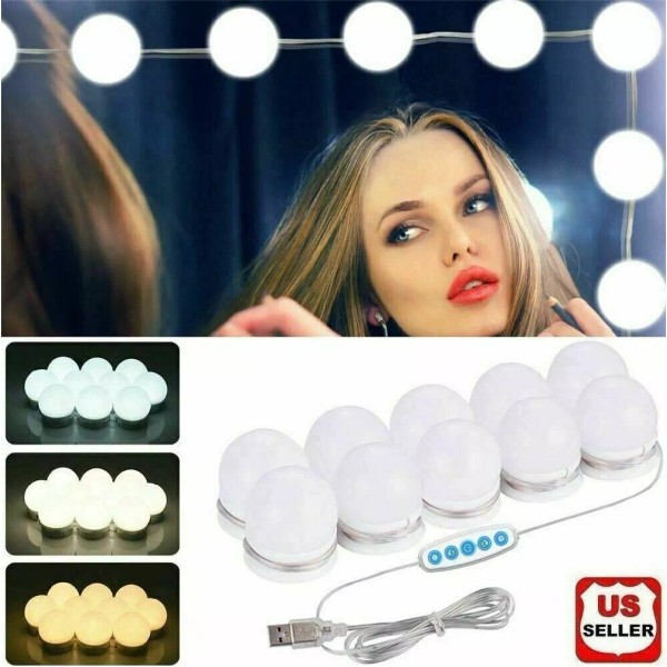Make Up Mirror Lights 10 LED Kit Bulbs Vanity Light Dimmable Lamp Hollywood