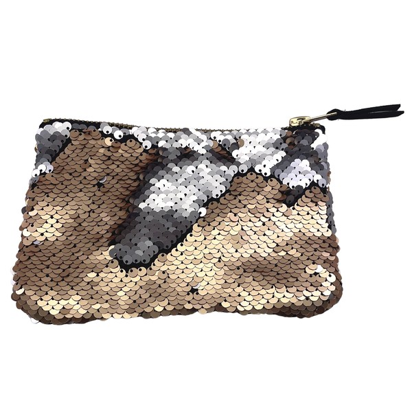Make-Up Organiser Bag 16 x 11 cm Sequins with Two Colours Effect (Gold + Silver)