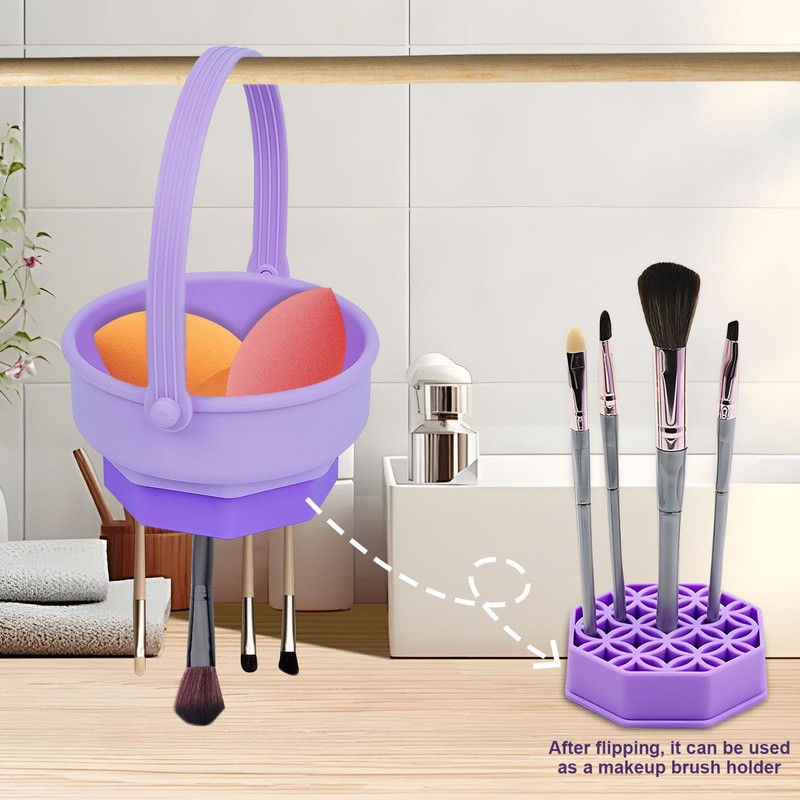 - 3 in 1 Make-up-Pinsel-Reinigungsmatte: Die make up pinselreiniger bowl kombiniert vier Funktionen: 1) Internes Reinigungskissen kann verwendet werden, um Make-up-Pinsel, Schwämme und Puderquaste zu reinigen; 2) Legen Sie Make-up-Pinsel in den unteren Schlitz und hängen Sie es als Make-up-Pinsel und Schwämme Trockengestell auf; 3) Drehen Sie es um und drehen Sie es um, um es zu einem Make-up Pinselhalter zu machen.