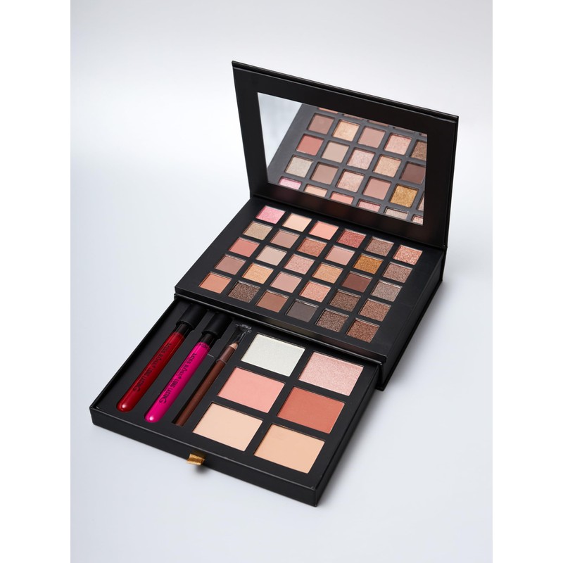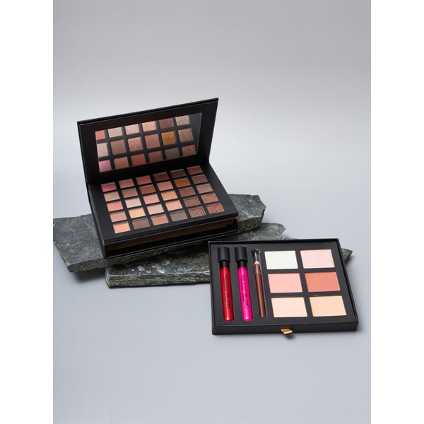 - Inhalt: Lidschatten in 30 Farbtönen, Rouge in 2 Varianten, Puder in 2 Farbtönen, Highlighter, Lippenstift in 2 Varianten, Eyeliner.