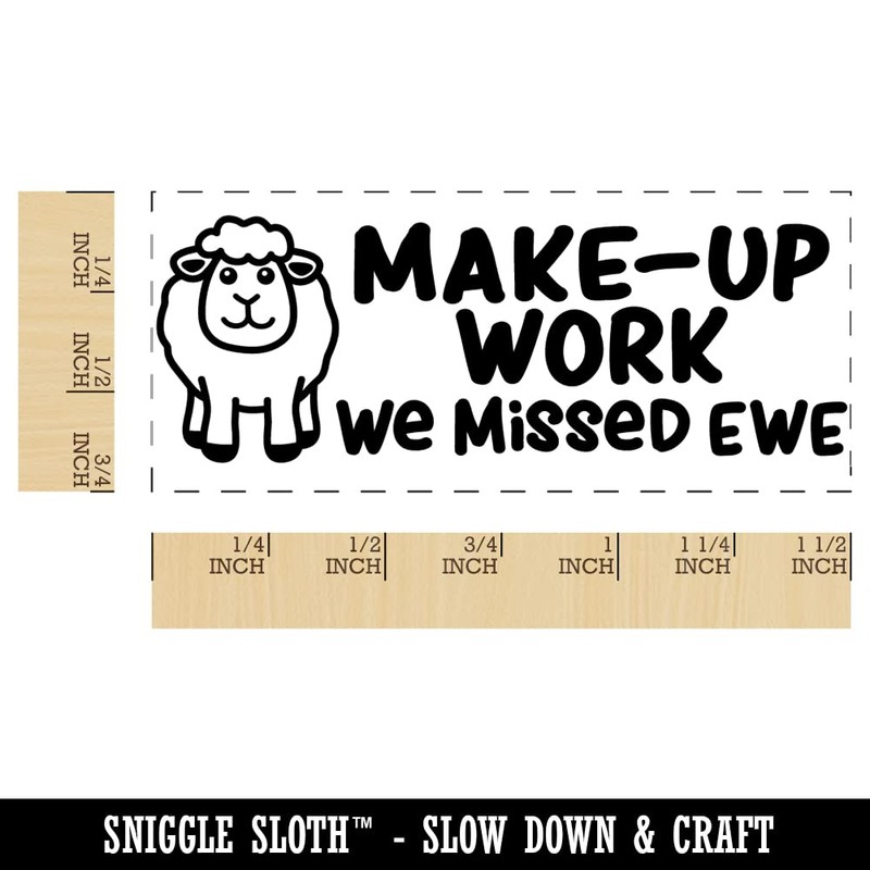 Make-Up Work We Missed Ewe You Teacher Student School Self-Inking Rubber Stamp Ink Stamper - 1-1/2 Inch Small - Lime Green Ink