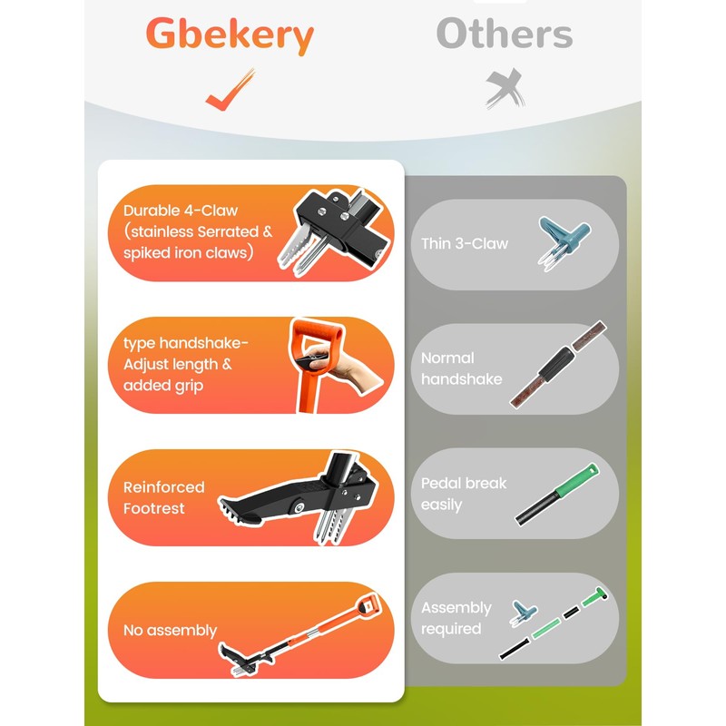 MAKEASY 4-Claw Weed Puller Tool with Long Handle Adjustable 39" to 47", Stand Up Weed Puller Tool for Yard, Gardening Weeding Tool Stainless Steel Claws