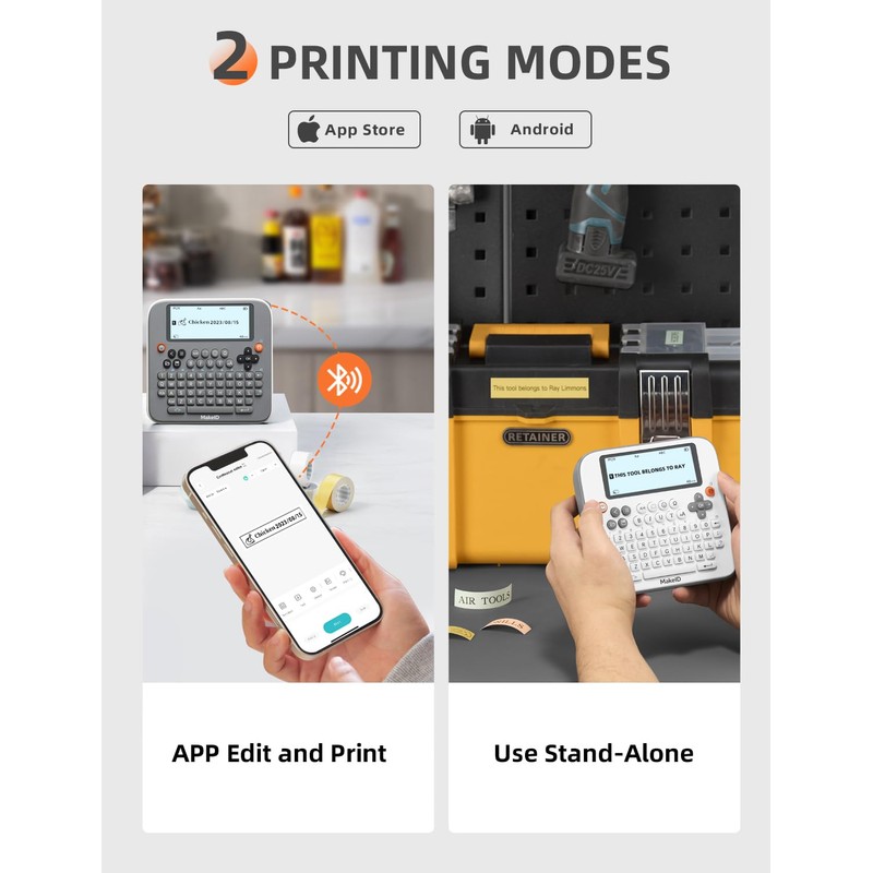 - APP DIY Custom Labels: connect via Bluetooth to the app and access a vast library of templates, including 47 fonts, 16 borders, 600+ stickers & symbols, 54+ templates, and barcode/QR code printing