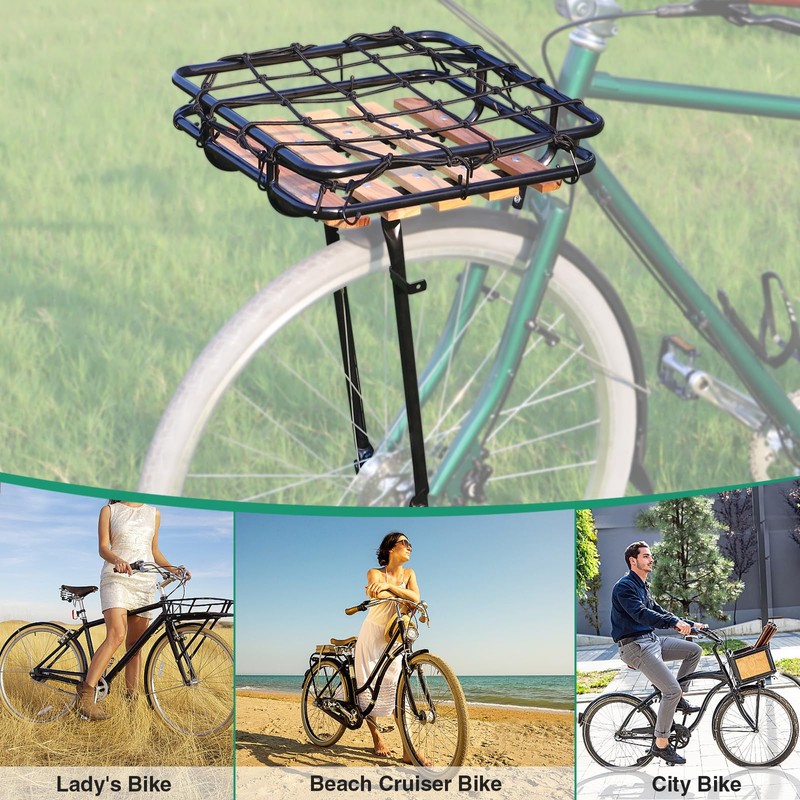 MAKELEN Heavy Duty Front Bicycle Basket Steel with Anti-Drop Net for 26 inch City Bike Beach Bike Black