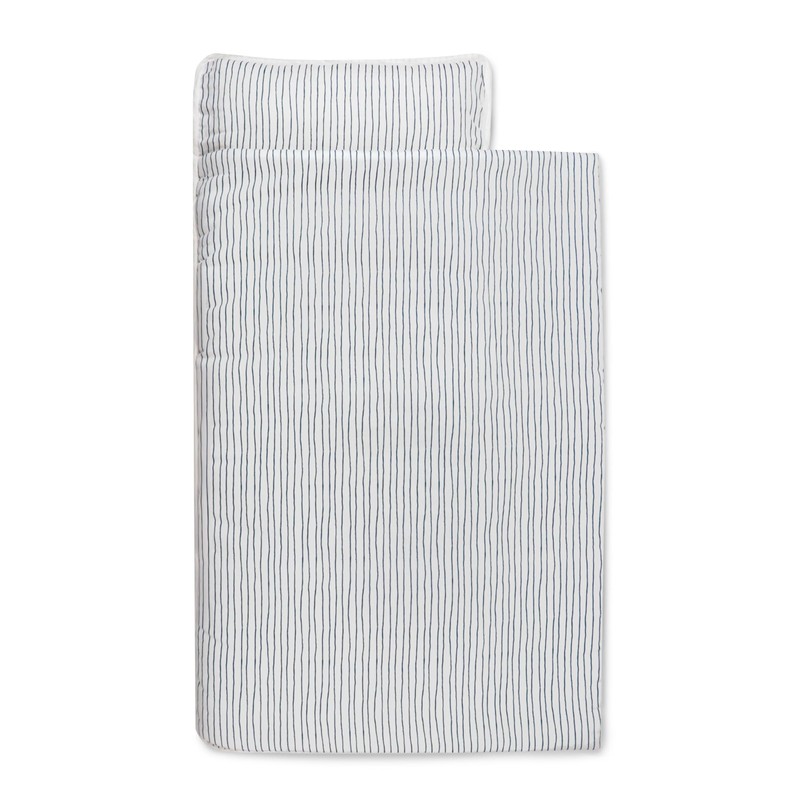 MakeMake Organics GOTS Certified Cotton Nap Mat with Detachable Pillow for Kids-Soft Microfiber Sleeping Bag for Toddlers, Boys, Girls - Ideal for Daycare, Preschool, Kindergarten-20 x50-Navy Stripes