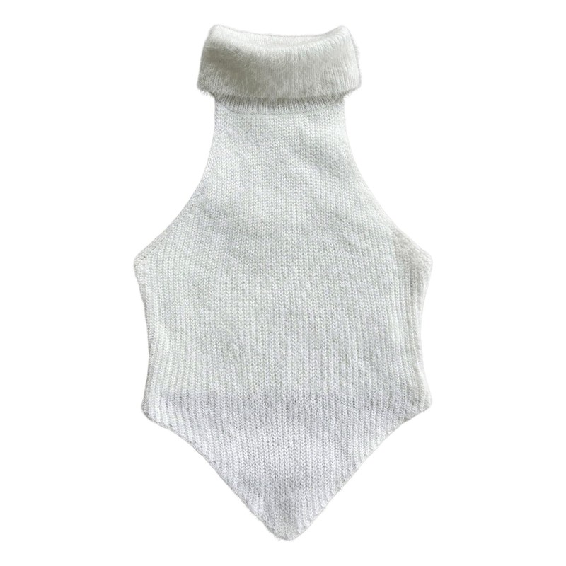 MakeMeChic Women's Turtleneck Sweater Vest Y2k Asymmetrical Sleeveless Fitted Knit Tops White Medium