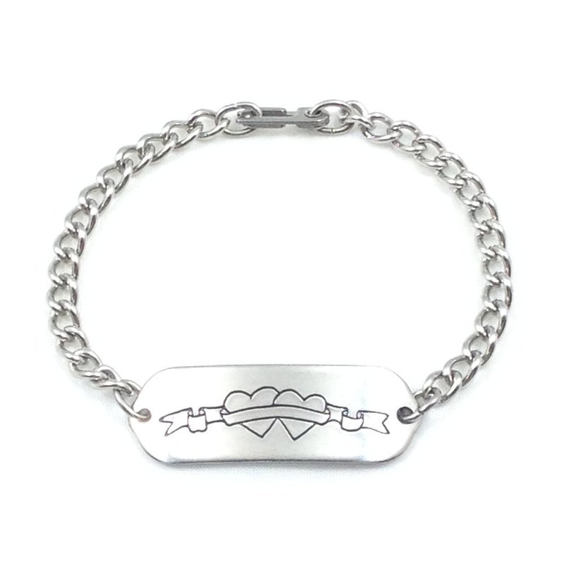 MakeMeThis Hearts ID Bracelet IDB-09 - Stainless Steel - Non Allergenic - Adult, Youth & Child Sizes