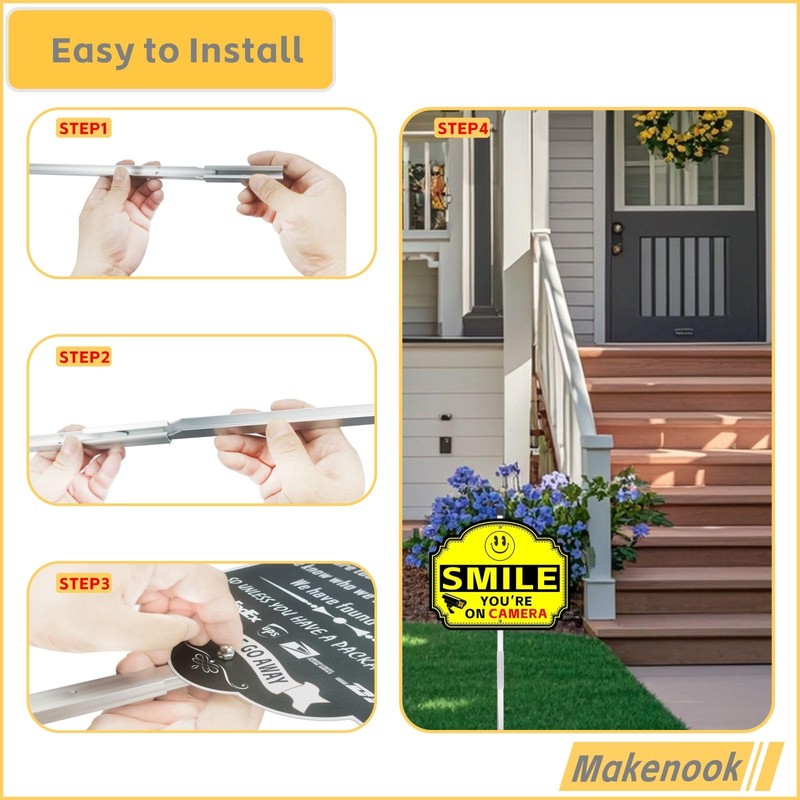 - 4. 28'' Stake for Stable Installation: This security sign for yard includes a 28-inch rust-resistant metal stake, allowing stable installation in any yard or lawn with no tools required