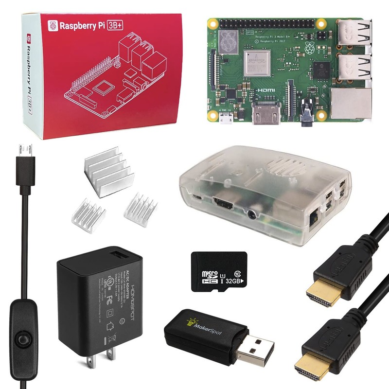 MakerSpot, Raspberry Pi 3 B+ Model B Plus Starter Kit by MakerSpot with 5v3a UL Listed Charger HDMI Cable Heat Sink & 32GB MicroSD Card