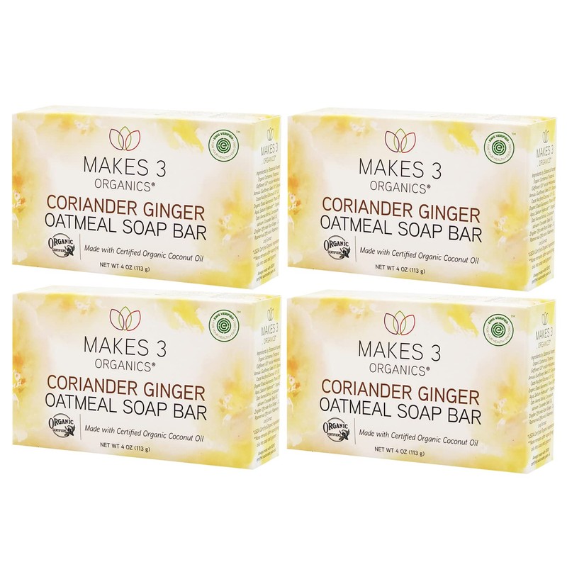Makes 3 Organics - Organic Coriander Ginger Oatmeal Soap (4-Pack)