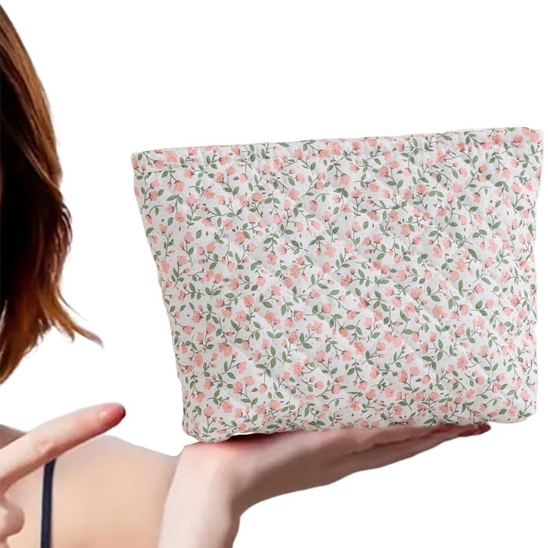 - Stylish Design:This large quilted cosmetic bag features a cute floral cotton print,perfect for adding a touch of elegance to your makeup routine;With ample room for all your cosmetics and toiletries, this makeup organizer pouch ensures you can keep everything neatly organized while travelling