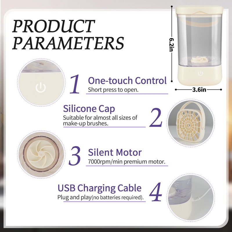 - Easy to Store & Carry: It is compact and convenient, making it easy to carry with you when traveling and going out. Designed with a sleek and compact aesthetic, our auto-rotating electric makeup brush cleaner cleanser is not only highly functional but also visually appealing. It seamlessly integrates into your makeup collection, adding a touch of style to your beauty routine