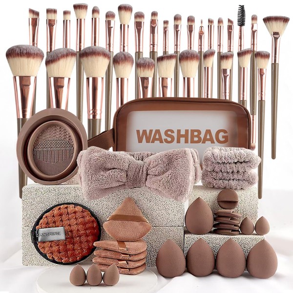 Makeup Brush Set for Foundation Concealer Eyeshadow and Travel, Include Make Up Brush, Sponge, 56PCS Brown