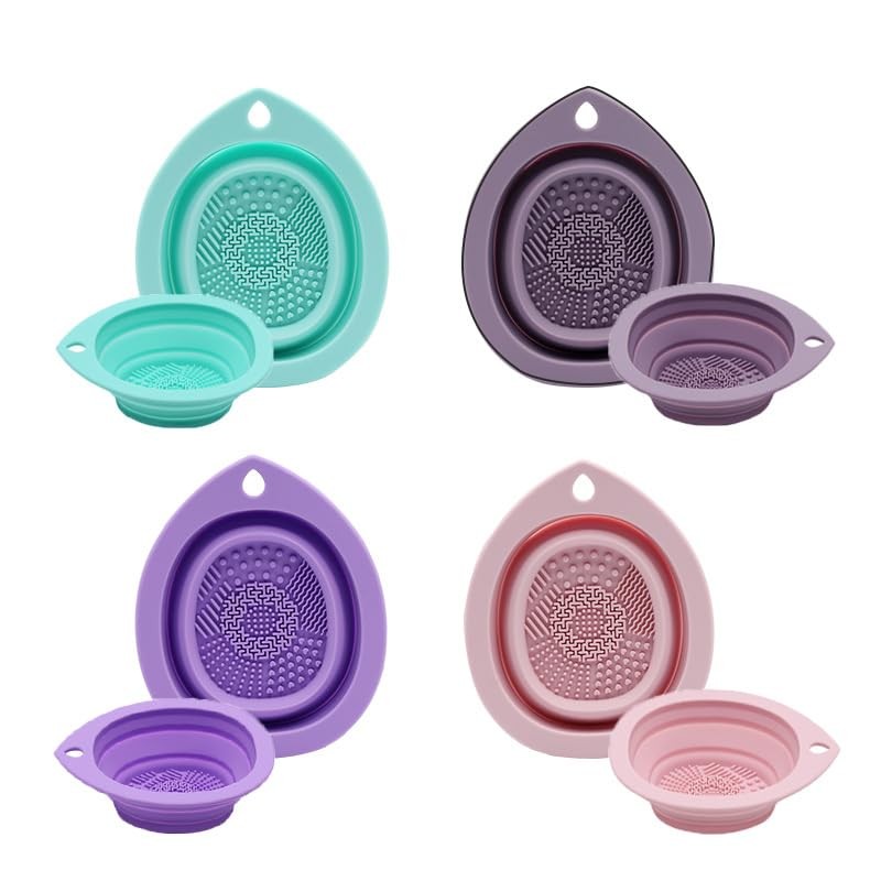 - PORTABLE DESIGN: Foldable silicone makeup brush cleaning bowl that collapses for easy storage and travel convenience.