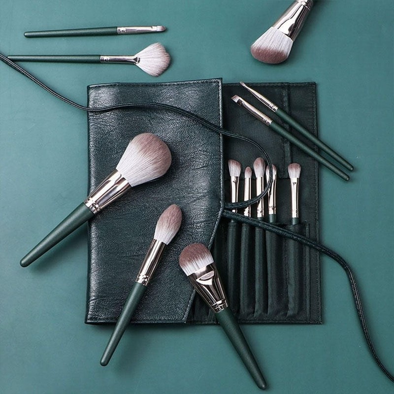 Makeup Face Makeup Mini Brush Brushes Set of 14 - Brushes Set of 14 - Green