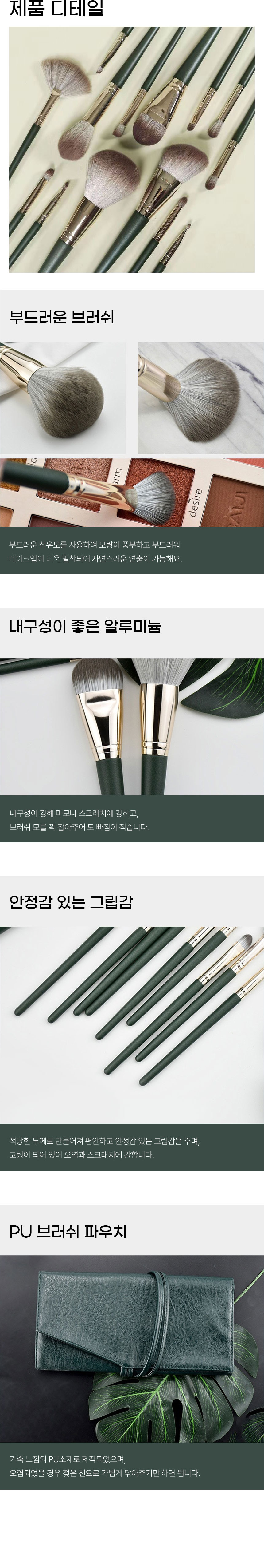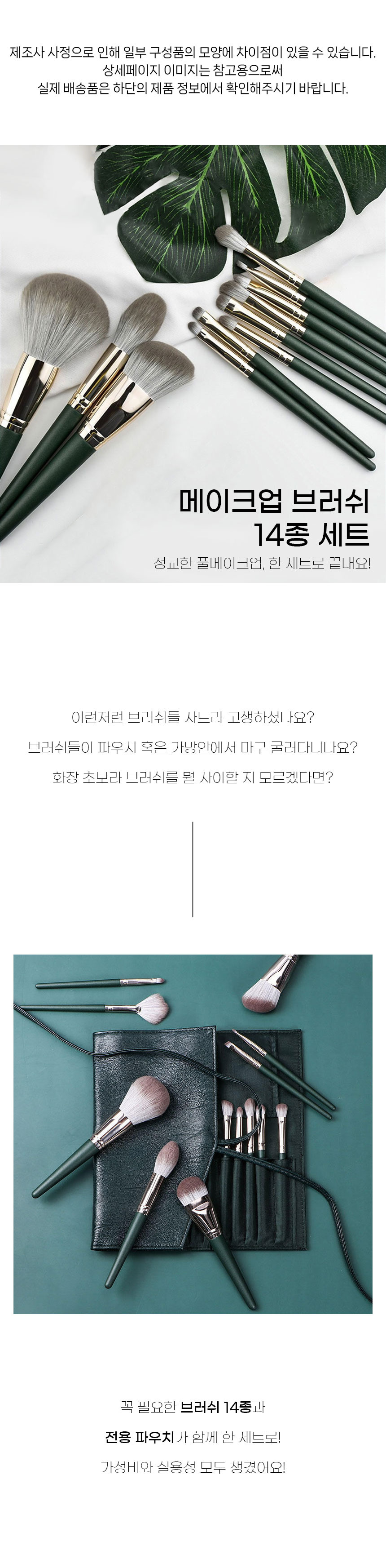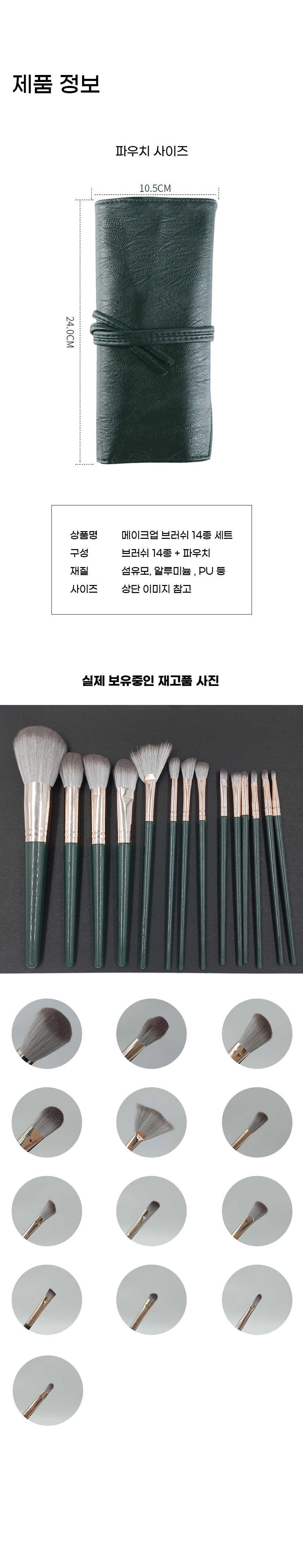 화장 페이스 메이크업 미니 붓 브러쉬 14종 세트 - 브러쉬14종세트-그린
