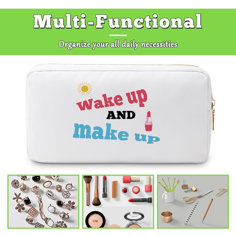 Makeup Lover Gifts Wake up and Make up Cosmetic Bag Inspirational Gifts for Women Makeup Bag Positive Presents for Friend Daughter Sister Birthday Graduation Christmas Friendship Presents Travel Pouch