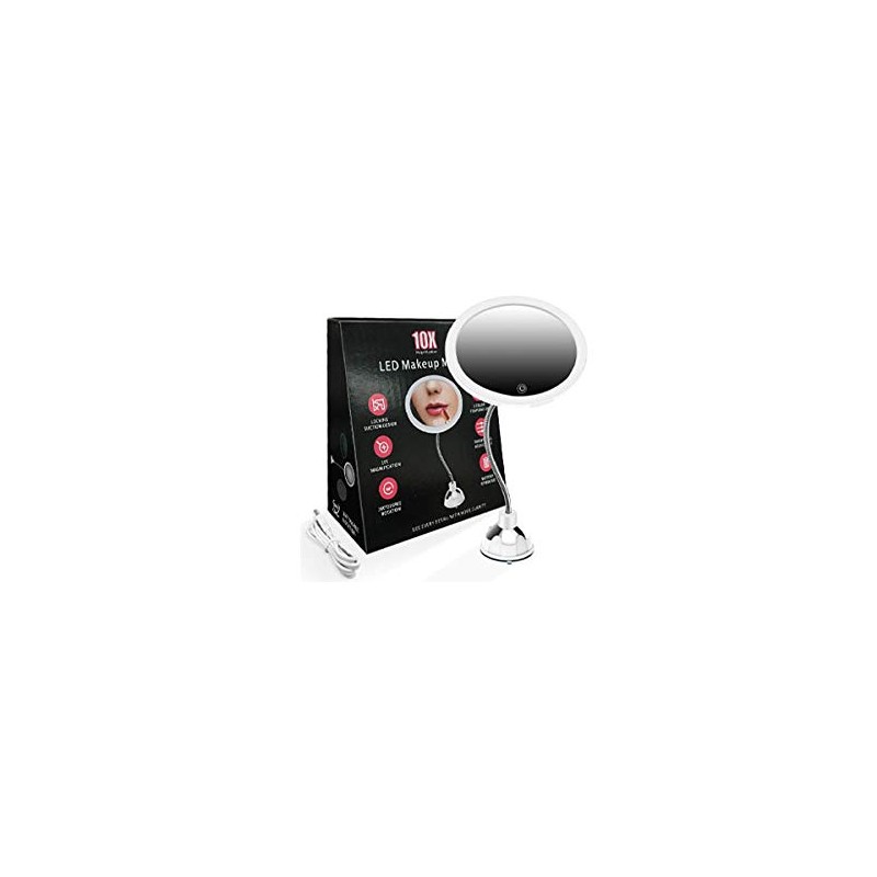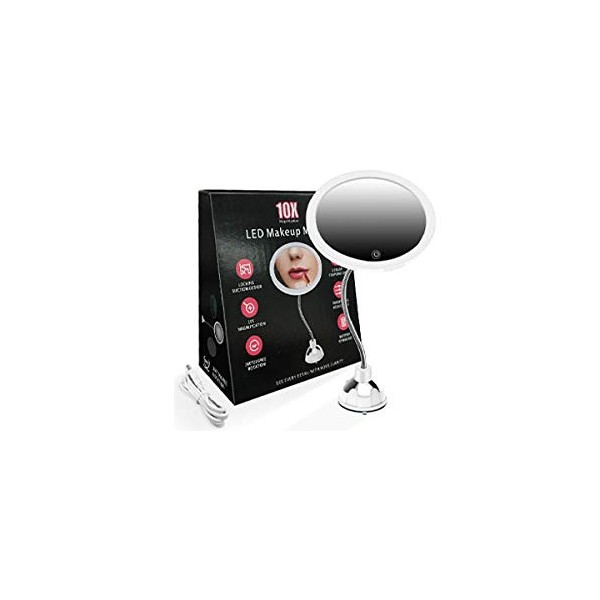 makeup mirror LED Lighted, 10X Magnifying Vanity Mirror with 360 Degree Swivel Rotation, Flexible Gooseneck, and Locking Suction Cup