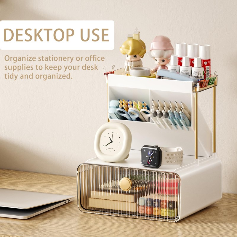 This skincare organizer is not only suitable for cosmetic storage, but also has multiple uses. You can put it on the desk, bedside table, for storing stationery, small accessories and other daily small objects, make your living space more neat and orderly.