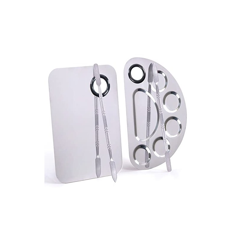Makeup Palette, Makeup Mixing Palette, Stainless Steel Metal Foundation Palette with Spatula Artist Tool for Mixing Foundation Nail-Art, Cosmetic Mixing Makeup Palette, Makeup Plate, 6×4"/Silver/2pcs