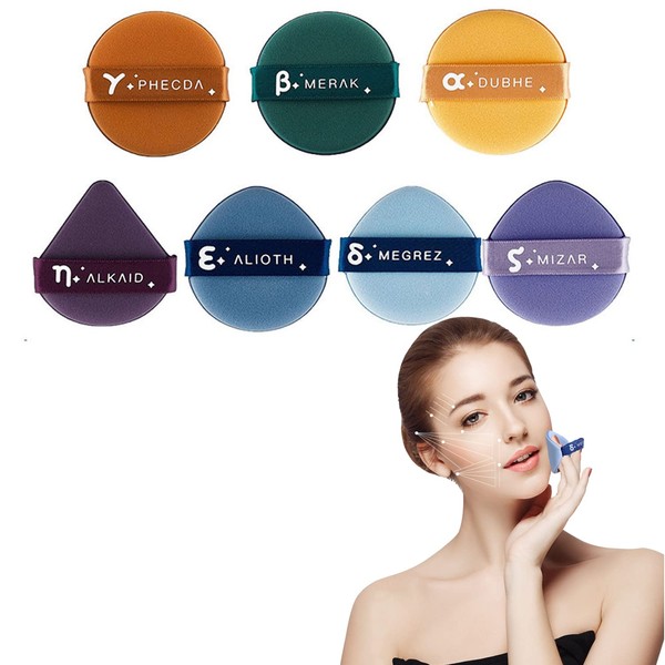 - The powder puff designed by Big Dipper: it is made of high-resilience cotton super-dense fine-pore material, which is not easy to absorb powder. The widened ribbon design makes your makeup more convenient and firm. Each powder puff ribbon has a planet name on it.The puff can be used on both sides.