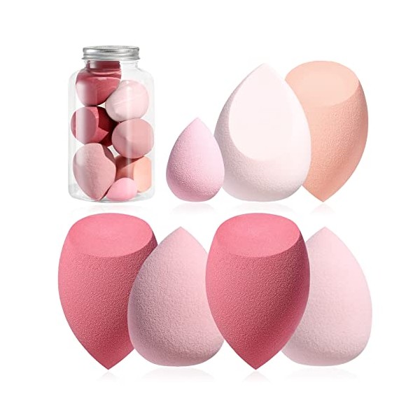 Makeup Sponge Set BS-MALL Blender Sponges 7 Pcs for Liquid, Cream, and Powder, Multi-colored with 1 Mini Makeup Sponge Pink