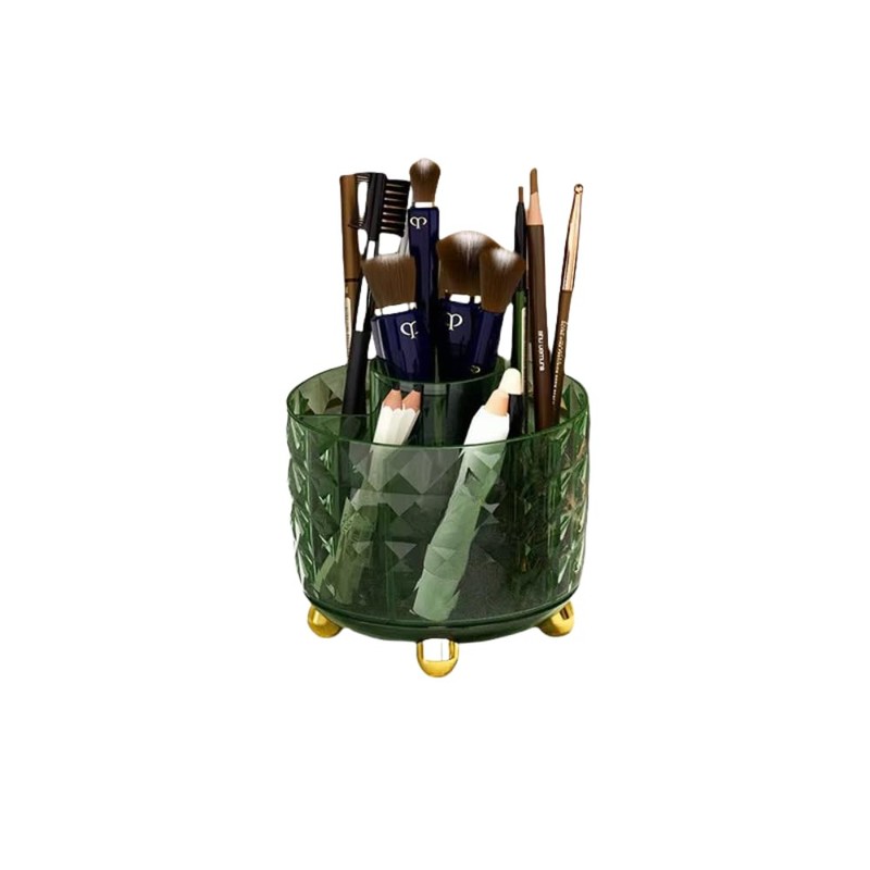 Makeup storage with lid, makeup brush holder with lid, 360 degree rotatable makeup brush holder, makeup brush tool storage, suitable for bathroom dressing area(green)