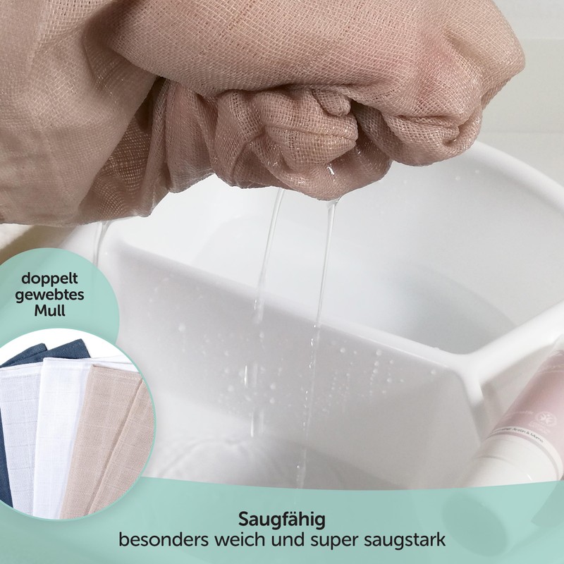 - Saugstark & kuschelig: Der weiche Mullstoff nimmt Feuchtigkeit perfekt auf und ist der ideale Babywaschlappen. Schlüpfe einfach mit der Hand hinein und schon kann die Reinigung deines Kleinen losgehen.