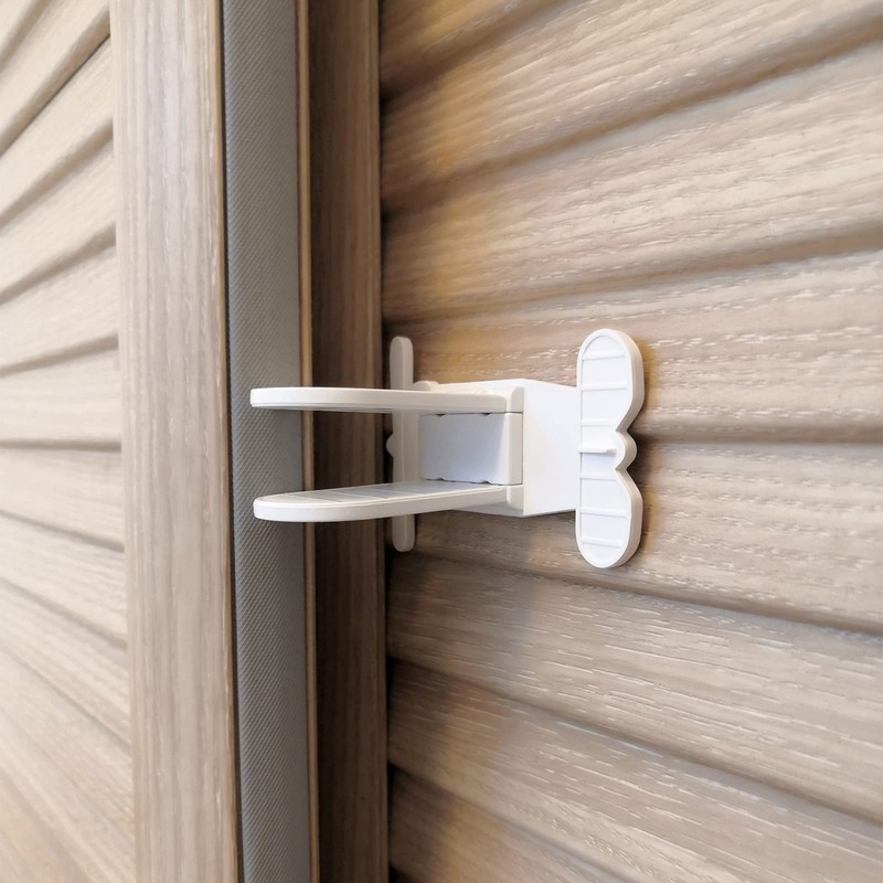 - Easy to Use: We understand that it will be not easy to do if it should take both hands to lock and unlock when you have your hands full with the housework. Considering that, Makibi sliding glass door child lock allows you to operate it with one hand: push the wings to unlock while pull them to lock.