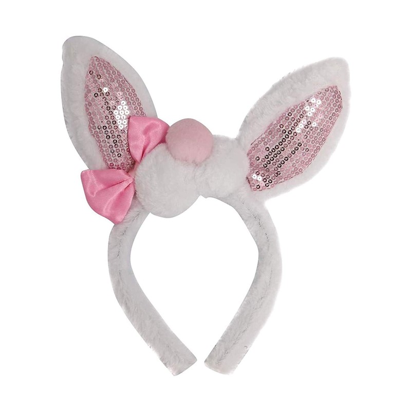 Plush sequin bunny ears are a great accessory to top off your outfit and celebrate Easter! Fun for a school play party favors Easter spring summer or Halloween costume accessory. Made of super soft fuzzy plush material over a plastic headband these pink sequin bunny ears are very comfortable to wear. Polyester. Headband height is approx. 10" approx. 5-8" headband width and approx. 4.5" ear length. Imported.