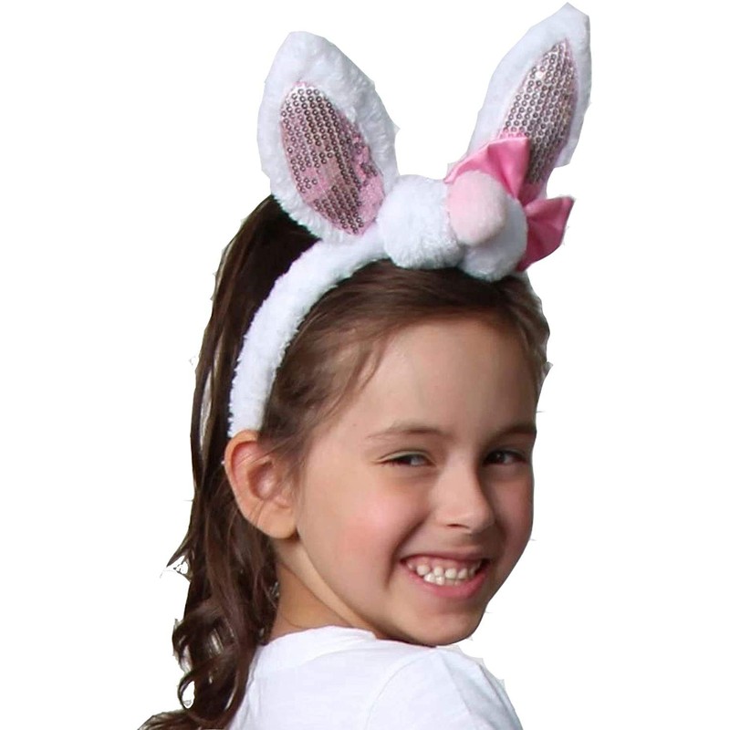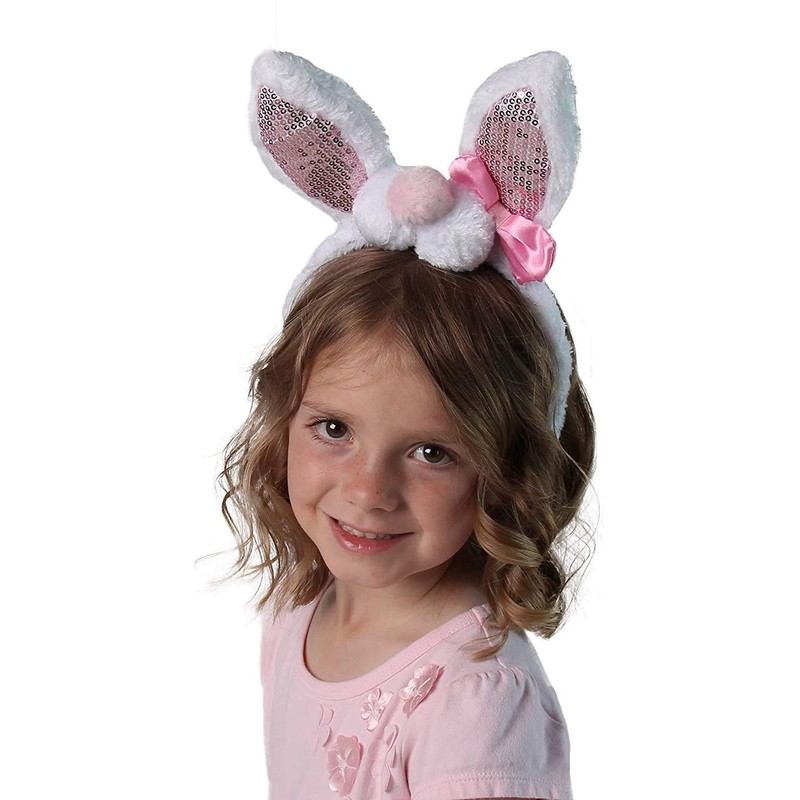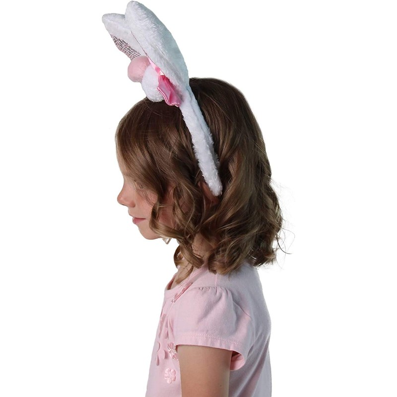 Making Believe Girls Pink & White Sequin Hoppy Easter Bunny Rabbit Ears & Bow Headband