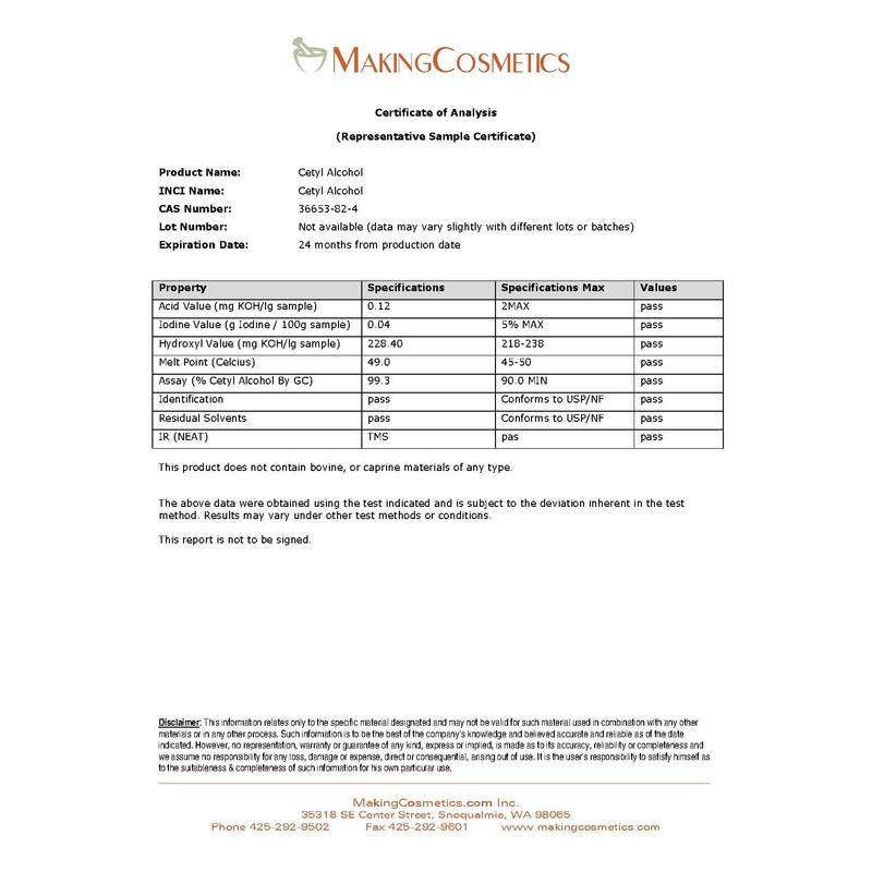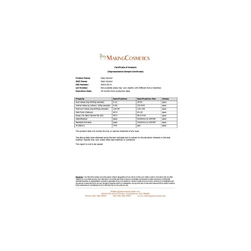 MakingCosmetics - Cetyl Alcohol - 4.4oz / 125g - Cosmetic Ingredient