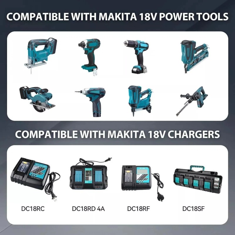 5.【Compatibility】- Precise battery interface. Compatible with Makita 18-volt LXT tools/ original charger, built-in protection against incorrect voltage, short circuit, internal overheating.