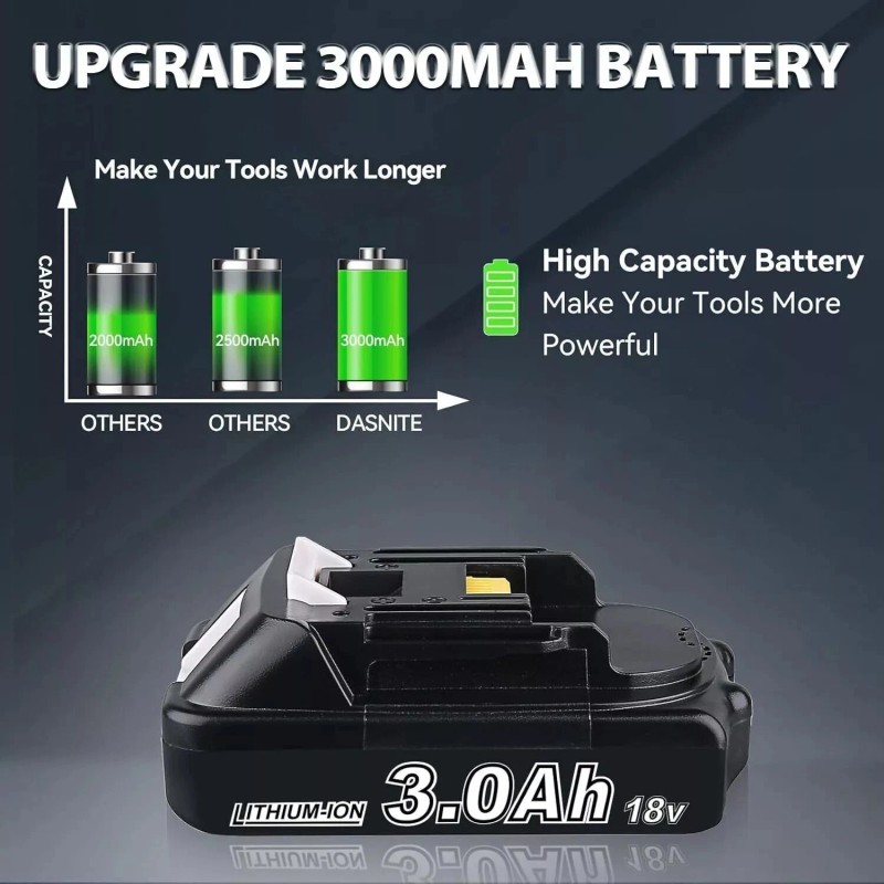 4.【Long-Lasting Working Time】- Higher 3.0Ah capacity battery provides more runtime per charge compared to original BL1815 BL1820.