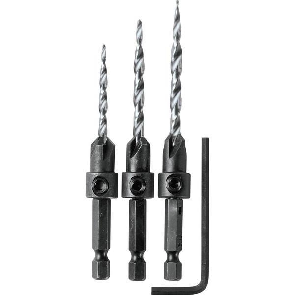 - Includes #6, #8, and #10 countersinks Plus a hex wrench