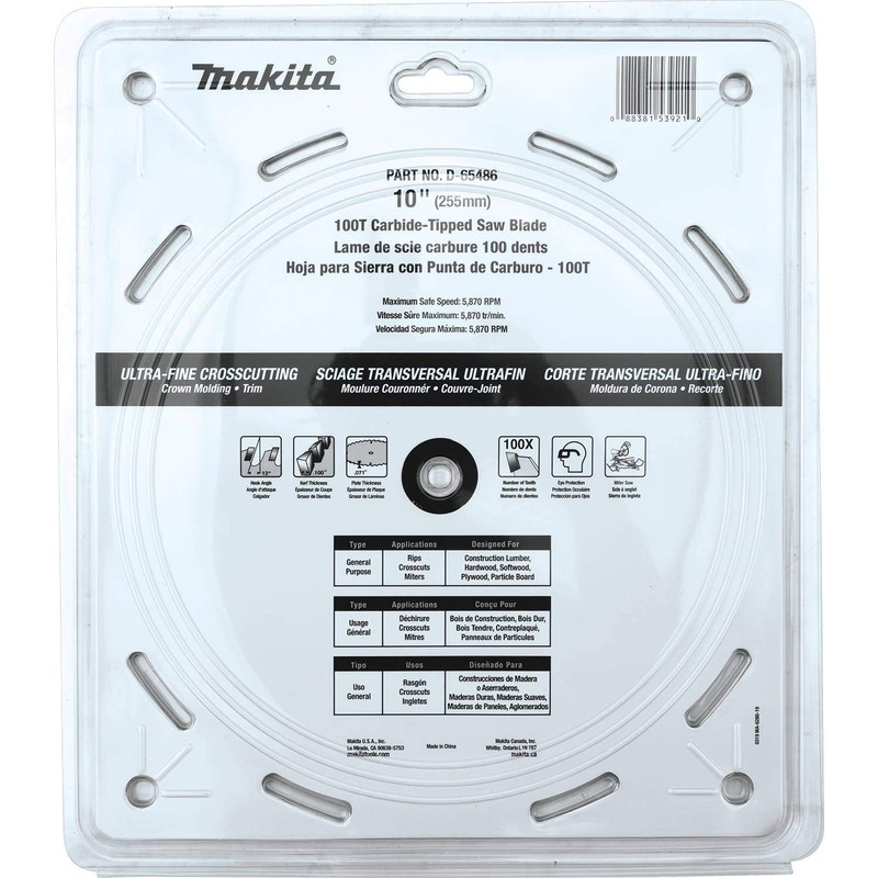 Makita D-65486 10" 100T Polished Miter Saw Blade, Ultra-Fine Crosscutting