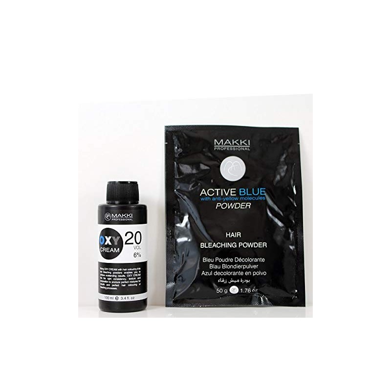 MAKKI HAIR BLEACHING KIT 20 ACTIVE BLUE BLEACH POWDER 50g + OXY CREAM VOL 20 (6%) 100ml