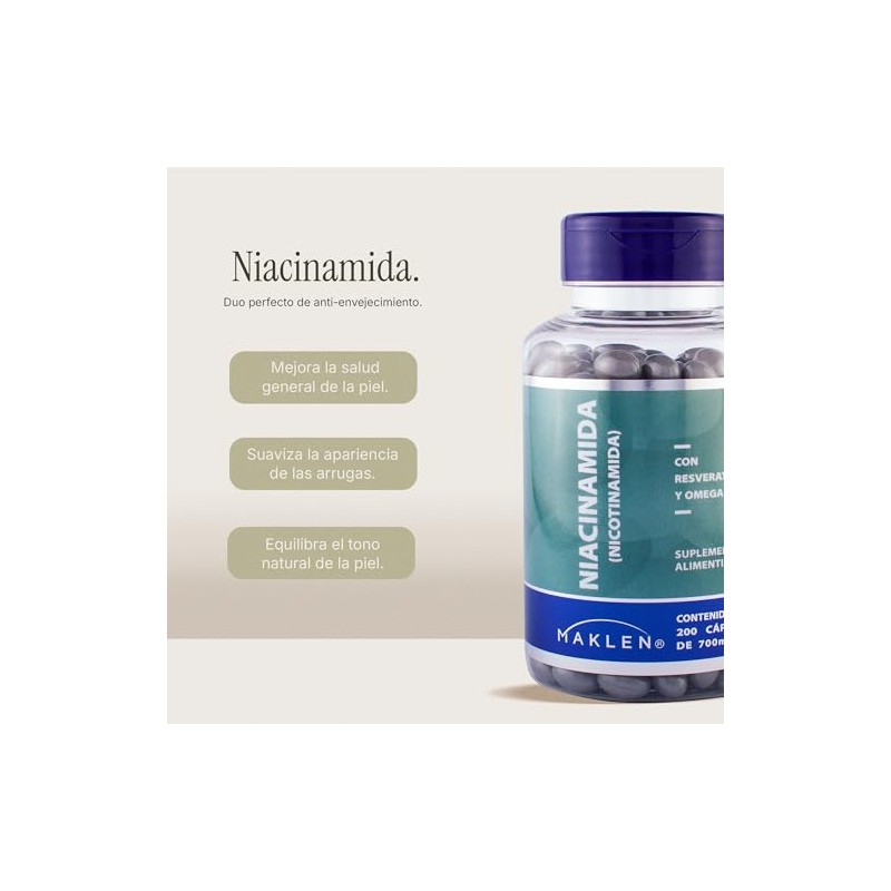 Maklen Niacinamida con Resveratrol - Nicotinamida con Resveratrol y Omega 3- Potente Formula Antienvejecimiento y Apoyo Celular, Energia y Salud de...
