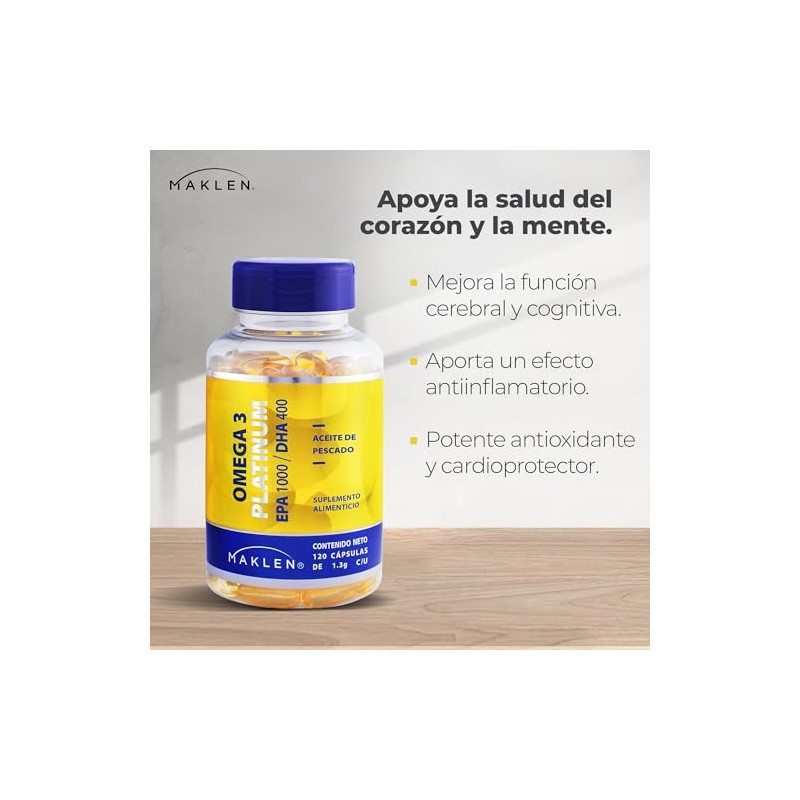 MAKLEN - Maklen Omega 3 Platinum - EPA1,000 mg y DHA 400 mg - Aceite de Pescado de Golden Omega® con Certificacion IFOS - 120 Softgels de 1,300 mg. 💯 Autenticidad y máxima durabilidad comprobadas. Materiales de alta gama y acabados premium. 🎯 Producto más buscado del mes. Ideal para quienes buscan lo mejor en calidad y estilo. Producto auténtico con satisfacción total asegurada. ¡No te quedes sin el tuyo y aprovecha esta oportunidad única!