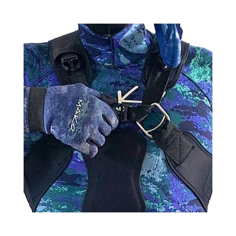 The MAKO Spearguns Quick Release Weight Vest features an ingenious quick release mechanism that enables you to effortlessly detach it using just one hand and a single swift motion.