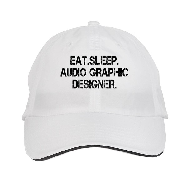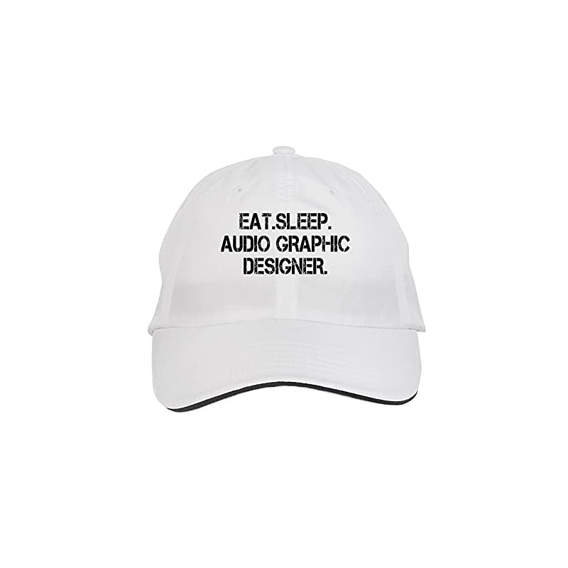 Makoroni - EAT Sleep EAT Sleep Audio Graphic Designer Hat Adjustable Cap, DesS13 White