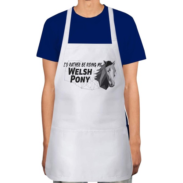 Makoroni - I'D RATHER BE RIDING MY Welsh Pony Apron Adjustable Kitchen Chef Apron with 2 Pockets Cooking Baking, DesI92