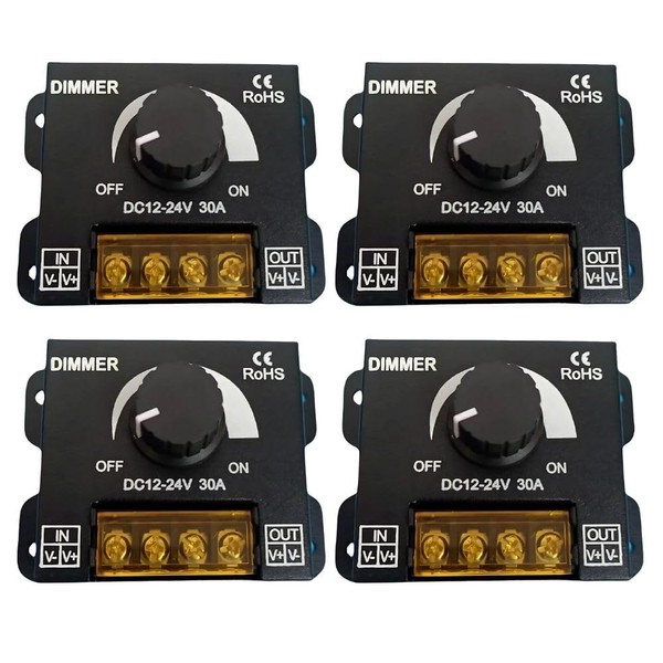 MAKUMINORS LED Dimmer Switch Dimmer Tape Controller Dimmer Switch DC12-24V 30A Stepless Adjustment with Lid Brightness Light Set of 4