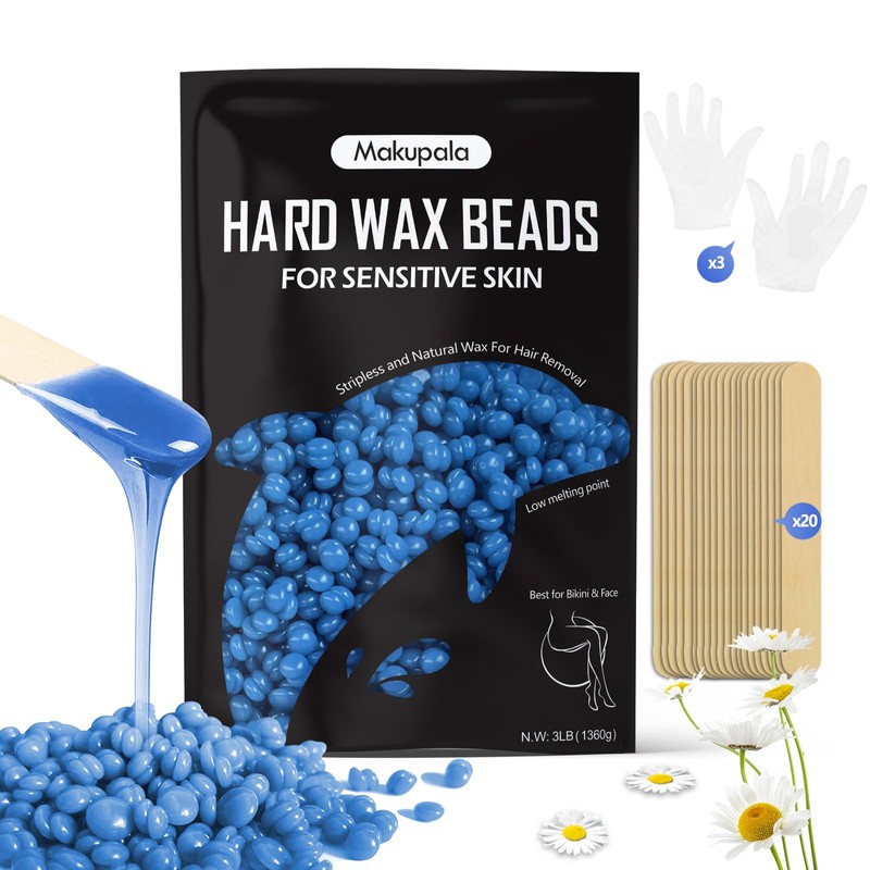 Makupala Hard Wax Beads Bulk for Hair Removal, 3lb Brazilian Waxing Beads for Sensitive Skin Body Bikini Legs Facial Armpit, Professional Blue Wax Beans for Women Men, At Home Salon Spa Use, Chamomile
