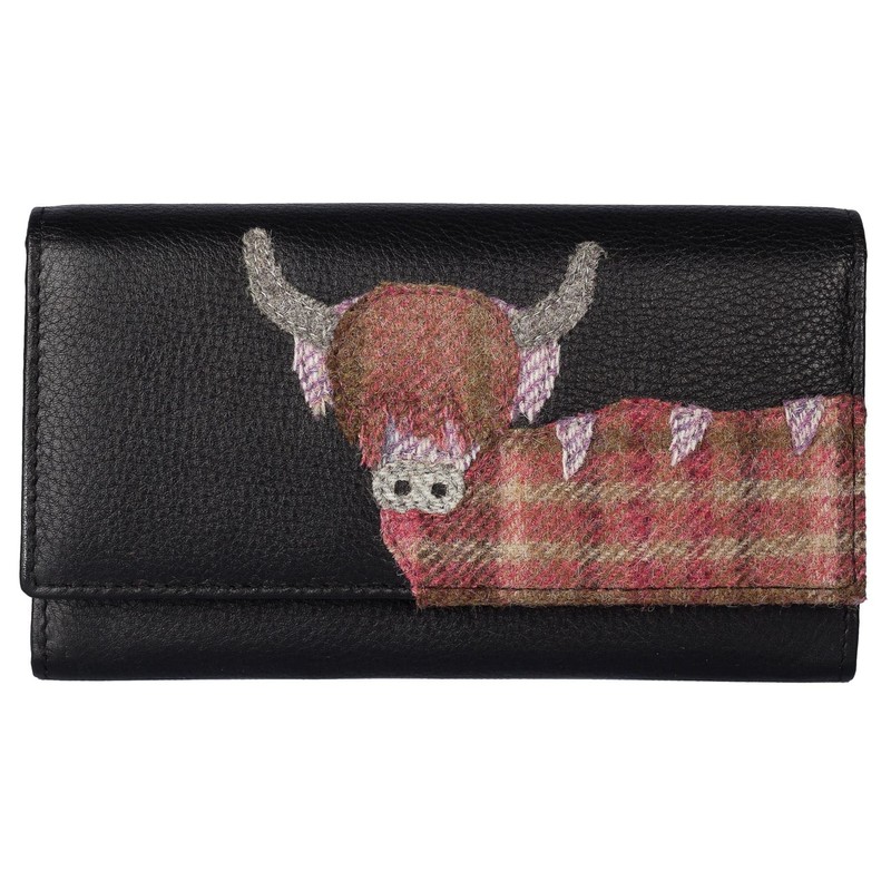 - Soft leather ladies flap over purse with applique 'Angus Cow' design 17cm x 9.5cm x 2cm - IMPORTANT - COLOURS OF APPLIQUE WILL VARY.