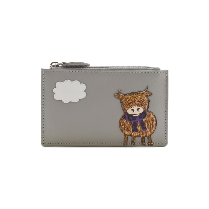 - Soft supple leather small purse/credit card holder with applique 'highland cow' detail 13cm x 8cm x 1cm.