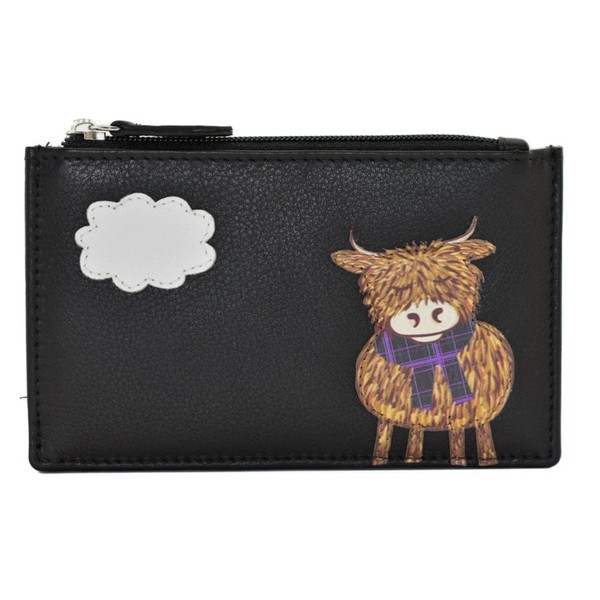 Mala Leather Highland Cow Card and Coin Purse, black, card holder
