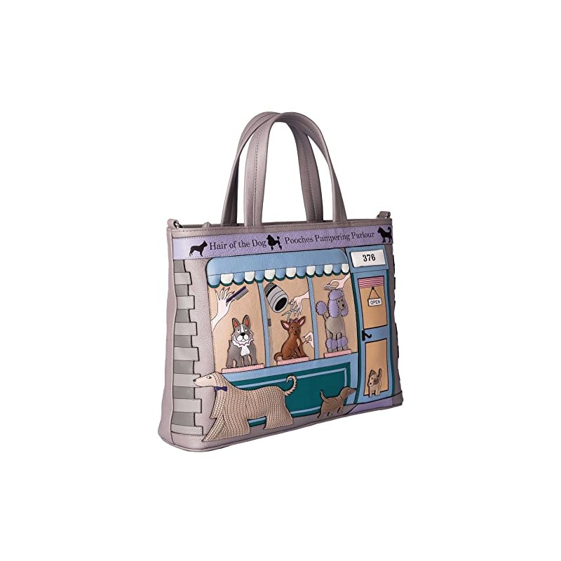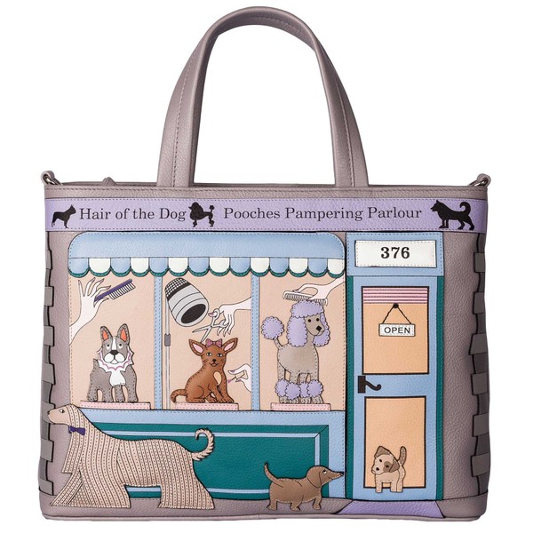 - Soft supple leather grab bag, adjustable detachable shoulder strap with applique 'Dogs Pampering Parlour' design 31cm x 23cm x 9cm.