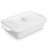 MALACASA 4.4 Quart Baking Dish With Lid, Porcelain Casserole dish with Lid, 13 x 9 Lasagna Pan Deep with Lid, Rectangular Bakeware With Handle, Microwave, Oven Safe, White, Series BAKE
