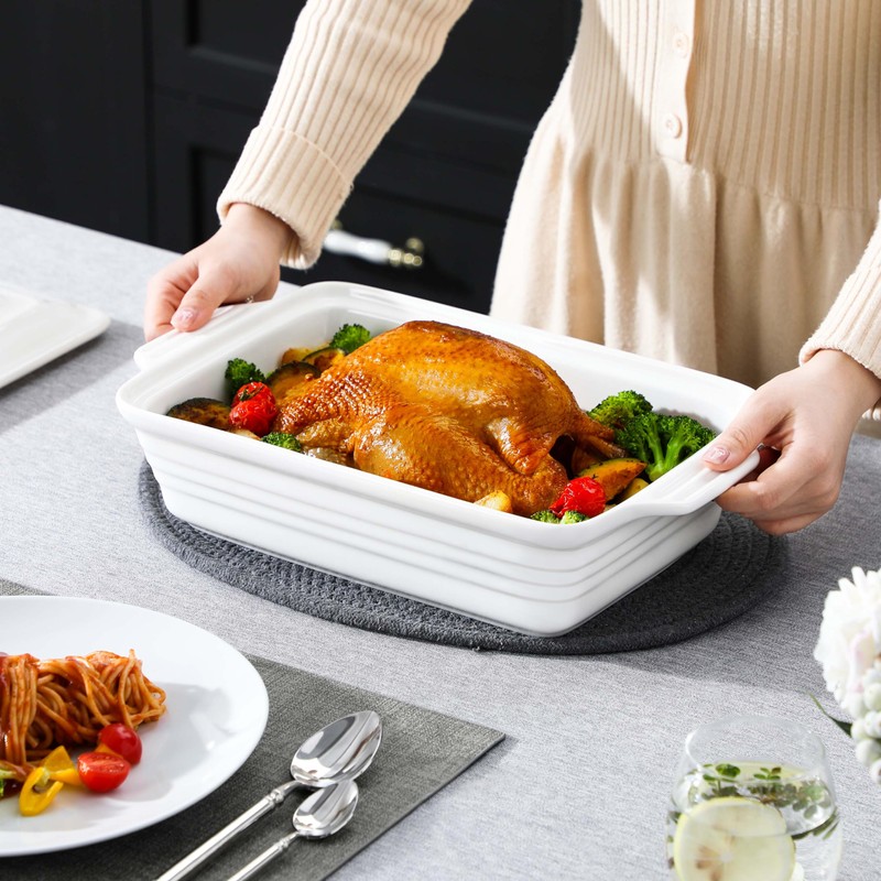 - 【MULTI-FUNCTIONAL CASSEROLE DISH】MALACASA Ceramic baking dish with lid helps to keep food warm, 4.4 qt extra-large capacity is ideal for preparing and serving various of dishes like lasagna, spaghetti, meat, vegetable, ideal for daily use and festival setting.